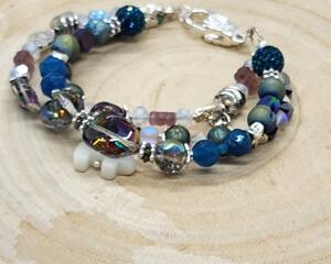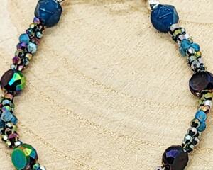 Boho Blue Gemstone & Crystal Beaded Bracelet – Iridescent Spa...