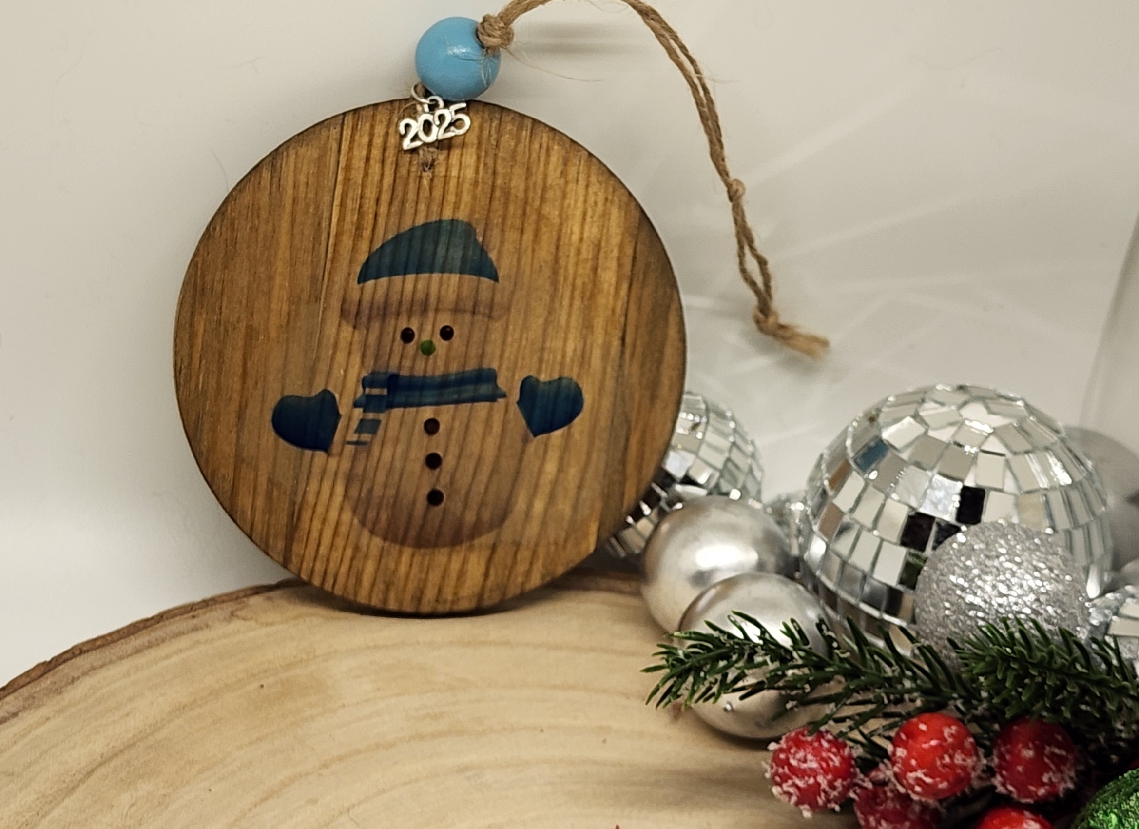 Celebrate the season with a handcrafted 4" round wooden Christmas ornament, designed to evoke warmth, nostalgia, and festive charm. Each ornament features a unique holiday scene—from cheerful snowmen and cozy gingerbread mugs to vintage trucks and classic Christmas trees—printed with care and topped with a gold "2025" charm.