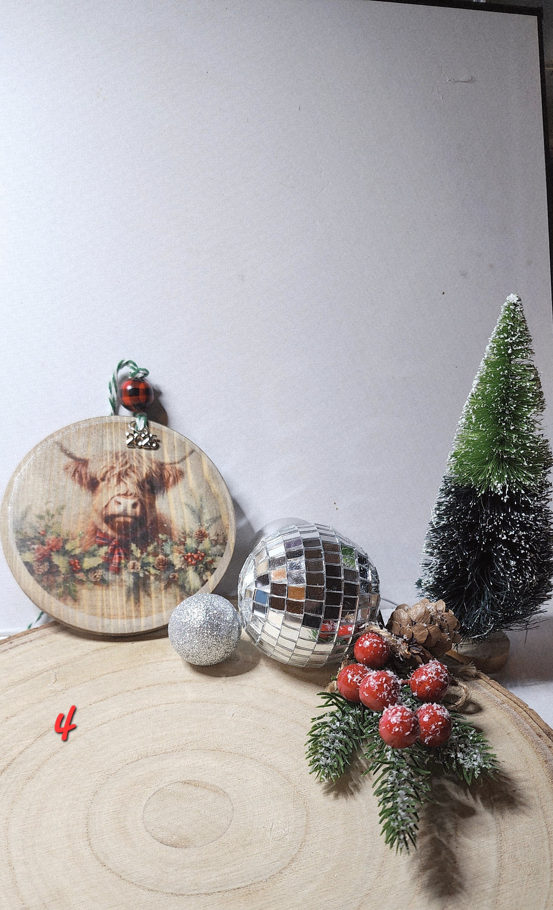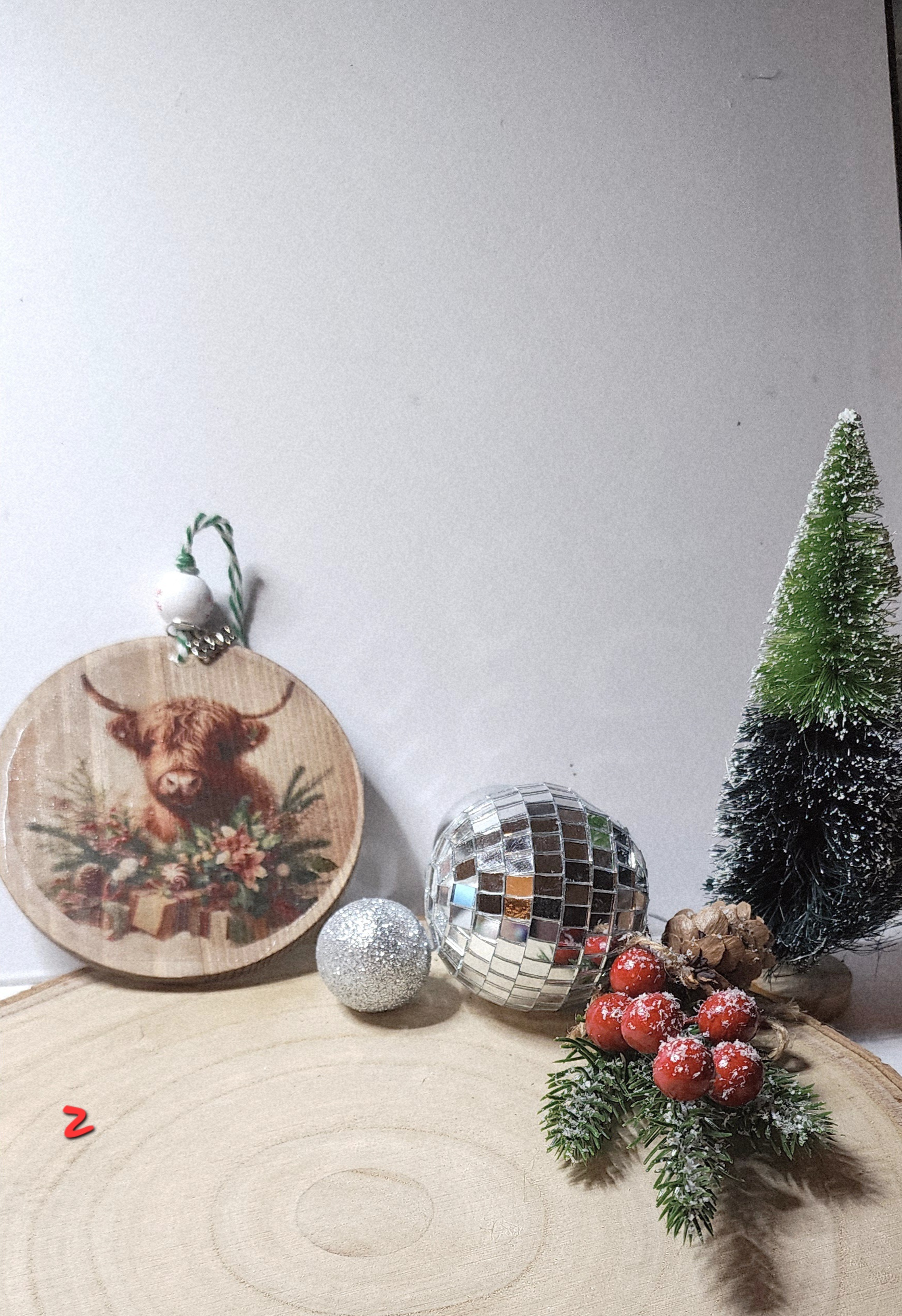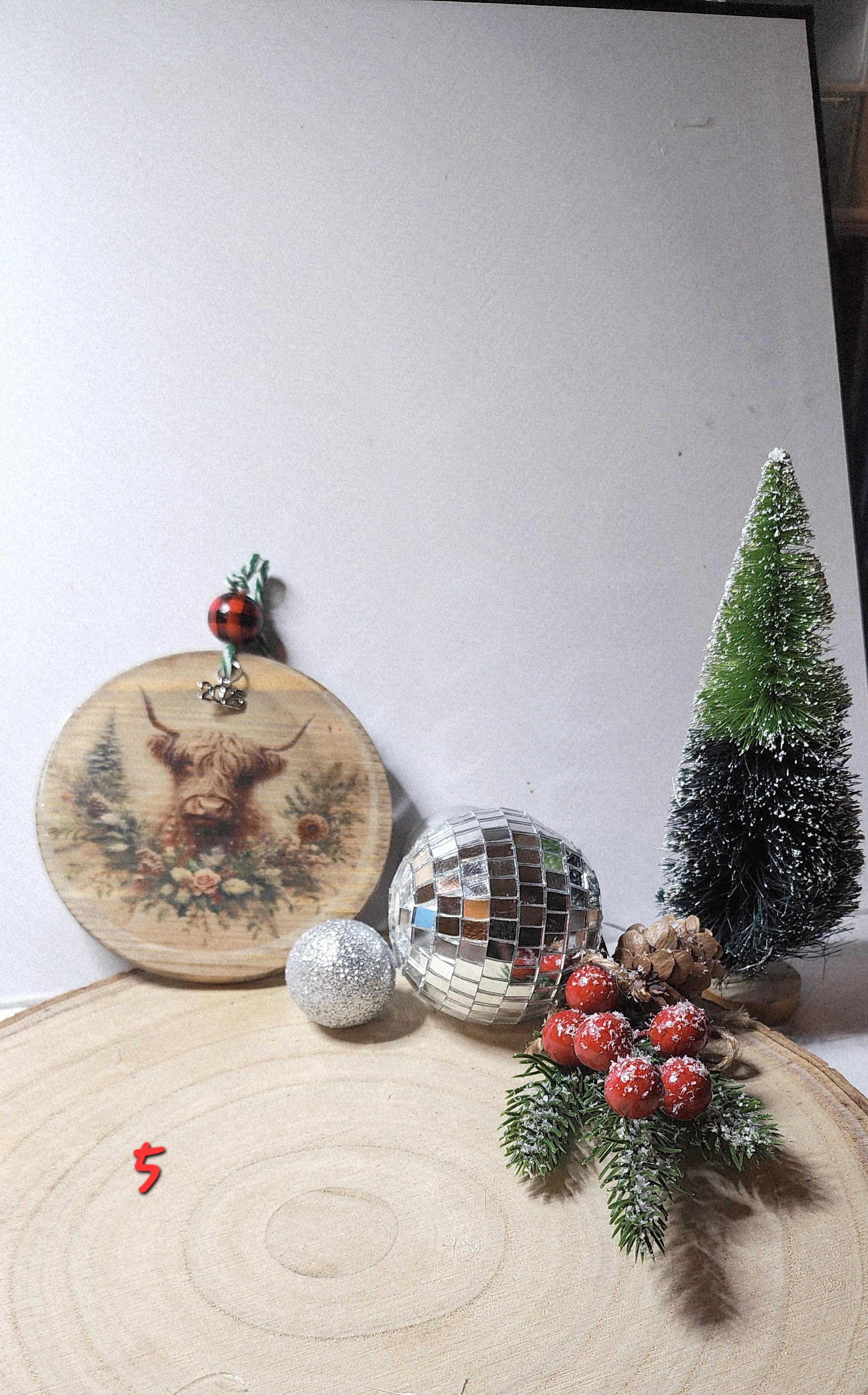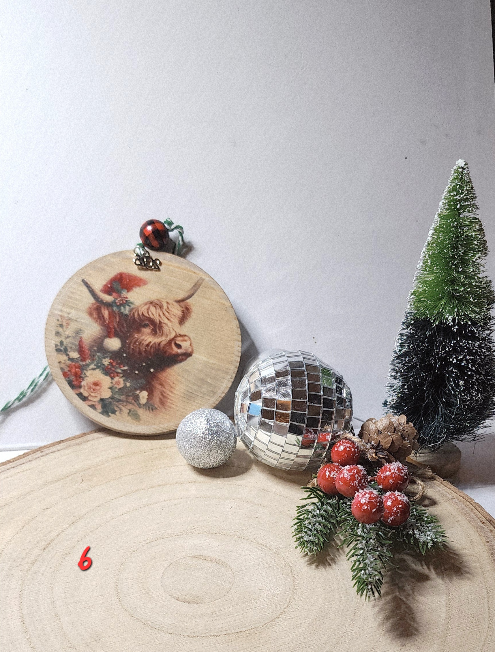 Bring a touch of timeless holiday charm to your home with these handcrafted Highland Holiday Ornaments. Each piece features a circular vintage-style image of a Highland cow on a 4" wood circle, with a wooden bead a 2025 charm and a bakers twine loop hanger.