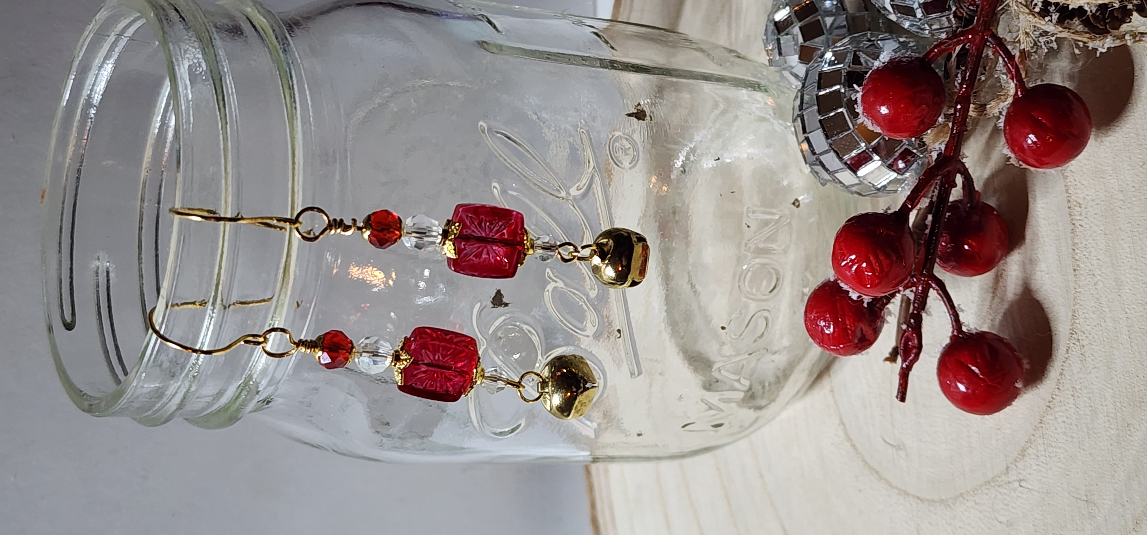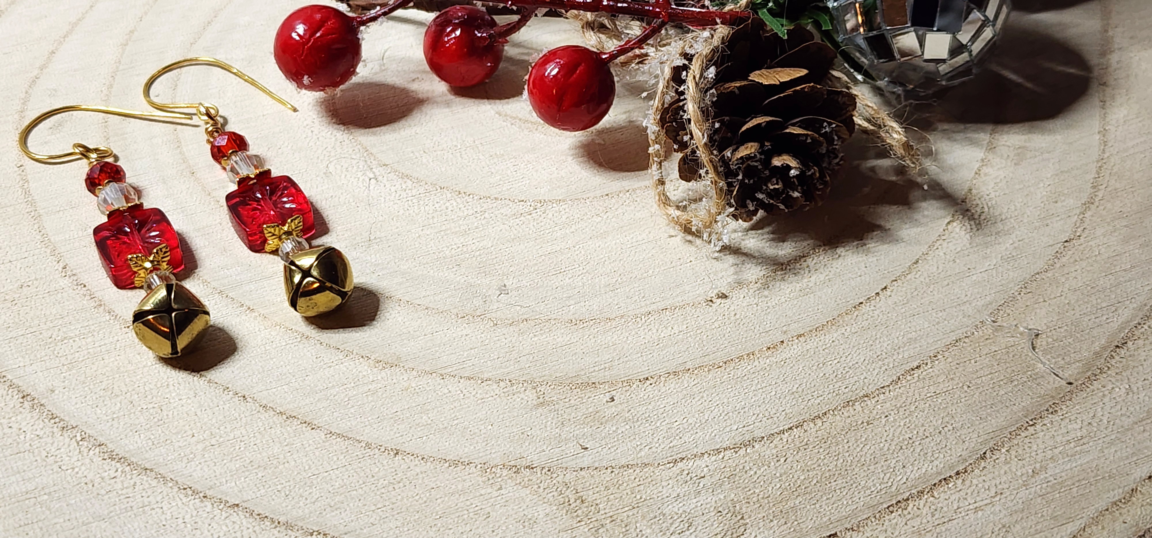 Each pair features a charming red bead shaped like a tiny gift box, topped with a golden bow, nestled between sparkling accents and a cheerful gold jingle bell. Whether you're sipping cocoa, wrapping presents, or dancing under twinkle lights, these earrings bring festive magic to every moment. ??